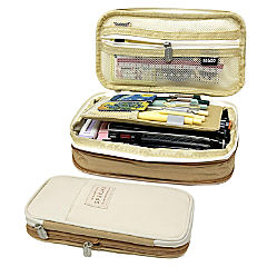 Wrapables Large Capacity Pencil Case, Expandable Pencil Pouch for Stationery Tools, Khaki