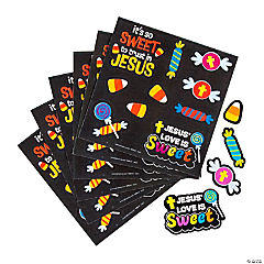 4 1/2" x 4 1/2" Bulk 50 Pc. Jesus’ Love is Sweet Treat Pack Sticker Sheets