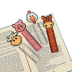 5 1/2" Farm Animal Ruler Multicolor Plastic Bookmarks - 24 Pc.