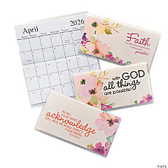 6 1/2" x 3 1/2" 2026 - 2027 Religious Inspirational Paper Pocket Calendars with Vinyl Cover - 12 Pc.