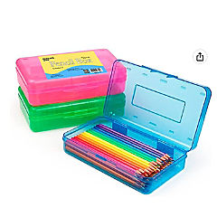 E-Clips USA Large Plastic Neon Pencil Box - Large Plastic Student Organizer, Assorted Clear Neon Colors, 8.25 X 6 X 2 Inches , 48 Units
