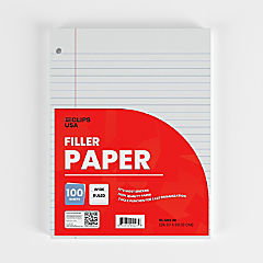 E-Clips USA College-Ruled Filler Paper - White Loose-Leaf, Fits Standard 3-Ring Binder, 100 Sheets , 48 Units