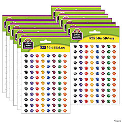 Teacher Created Resources Colorful Paw Prints Mini Stickers, 3/8"Dia, 528 Per Pack, 12 Packs