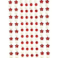 Wrapables 164 pieces Crystal Flower and Pearl Stickers Adhesive Rhinestones, Red