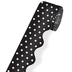Black with White Polka Dots Rolled Scalloped Bulletin Board Borders
