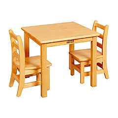 ECR4Kids Hardwood Table with 20in Legs and Two 10in Chairs, Honey