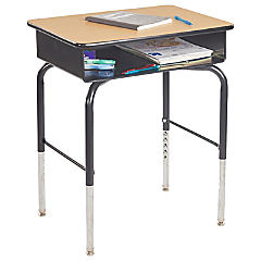ECR4Kids Open Front Desk with Metal Storage Book Box, Adjustable, Classroom Furniture, Maple/Black