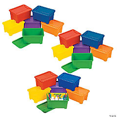 10 1/2" x 7" Bulk 18 Pc. Bright Color Classroom Storage Baskets with Lids
