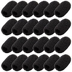 24-Pack Mini Black Foam Windscreen for Headset Microphone, Wind Screen Cover Guard for Lavalier and Lapel Mic, 0.8 In