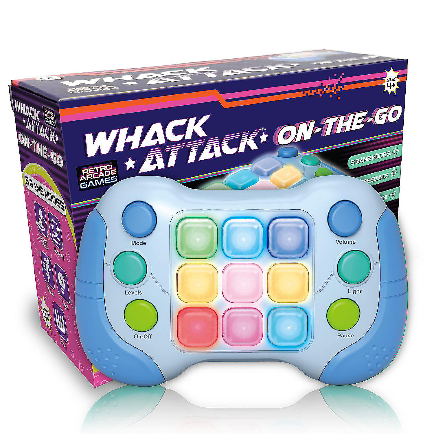 THIN AIR GAMES: WHACK ATTACK ON-THE-GO - Say hello to nonstop fun! The Fast Push Fidget Toys Handle by Thin Air Brands is your portable ticket to an action-packed, brain-boosting experience. This handheld electronic game lights up, beeps, and challenges your reflexes at lightning speed. Kids, teens, and adults alike will find themselves hooked as they race against flashing buttons to test their memory and reaction times. It's a STEM-friendly way to boost focus and concentration without feeling like homework. Flip on the switch, wait for the lights to flash, and push the correct sequence of buttons before time runs out. Each level gets trickier, so be ready to keep your mind sharp and your fingers moving! The lightweight gamepad handle design is easy to grip, making it perfect for car rides, airplane trips, or simply chilling at home. Impress your friends at parties, or bring it along to family gatherings for a burst of friendly competition. Looking for the perfect holiday or birthday surprise? Whack Attack On-the-Go adds excitement to any gift list. Challenge yourself, challenge your friends, and discover hours of entertaining, educational play with this flashy, fast-paced handheld game! Requires 3 x AAA batteries, not included.