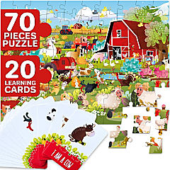 QUOKKA 70 Pieces Search and Find Riddle Puzzles and 20 Guessing Cards for Kids Ages 4-6 - Farm