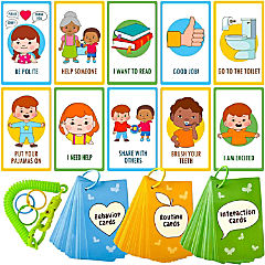 QUOKKA Autism Learning Materials - Communication Cards for Kids - 94 Visual Flashcards with 3 Rings & Clip