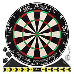 (7 items)Viper Shot King Sisal Dartboard, Dartboard Backboard, "The Bull Starts Here" Throw Line Marker and Elite Steel Tip Darts