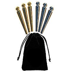 WE Games Standard Metal Cribbage Pegs with Velvet Pouch - Set of 6 (2 Brass, 2 Chrome, 2 Black)