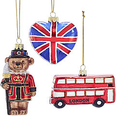 Kurt Adler C7594 Glass British Ornaments, 3-Piece Set
