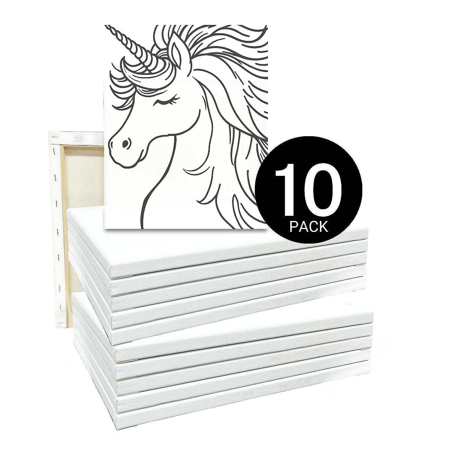 This bundle of 10 preprinted "Unicorn Dream" canvases is perfect for creating beautiful artwork with ease. Each canvas features a pre-drawn design with crisp outlines, ready for painting. Made from durable cotton duck fabric, the canvases are triple primed with acrylic titanium and stretched over a sturdy 5/8" kiln-dried wooden frame for a professional finish. Ideal for acrylic paints, these 8" x 10" canvases provide a high-quality surface for vibrant and lasting creations.Key Features: