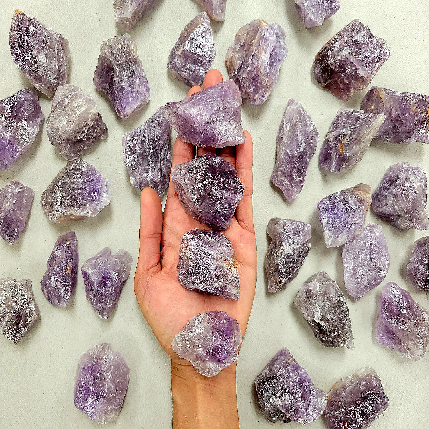 These are A-Grade and large rough Amethyst chunks imported from Brazil. Each piece measures between 2 inches to 3.5 inches or more. You will have the option to purchase a 1 piece sample or buy in bulk weight for a much better deal. These are beautiful large crystal specimens to hand-polish or tumble. These are pure high energy stones to use for all kinds of metaphysical rituals like crystal healing, reiki, chakra balancing, meditation, tarot-card reading, spell-casting and more. These are also great for all kinds of crystal crafting ventures, unique art projects and art installations.