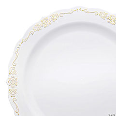Premium 7.5" White with Gold Vintage Round Disposable Plastic Appetizer/Salad Plates (120 plates)