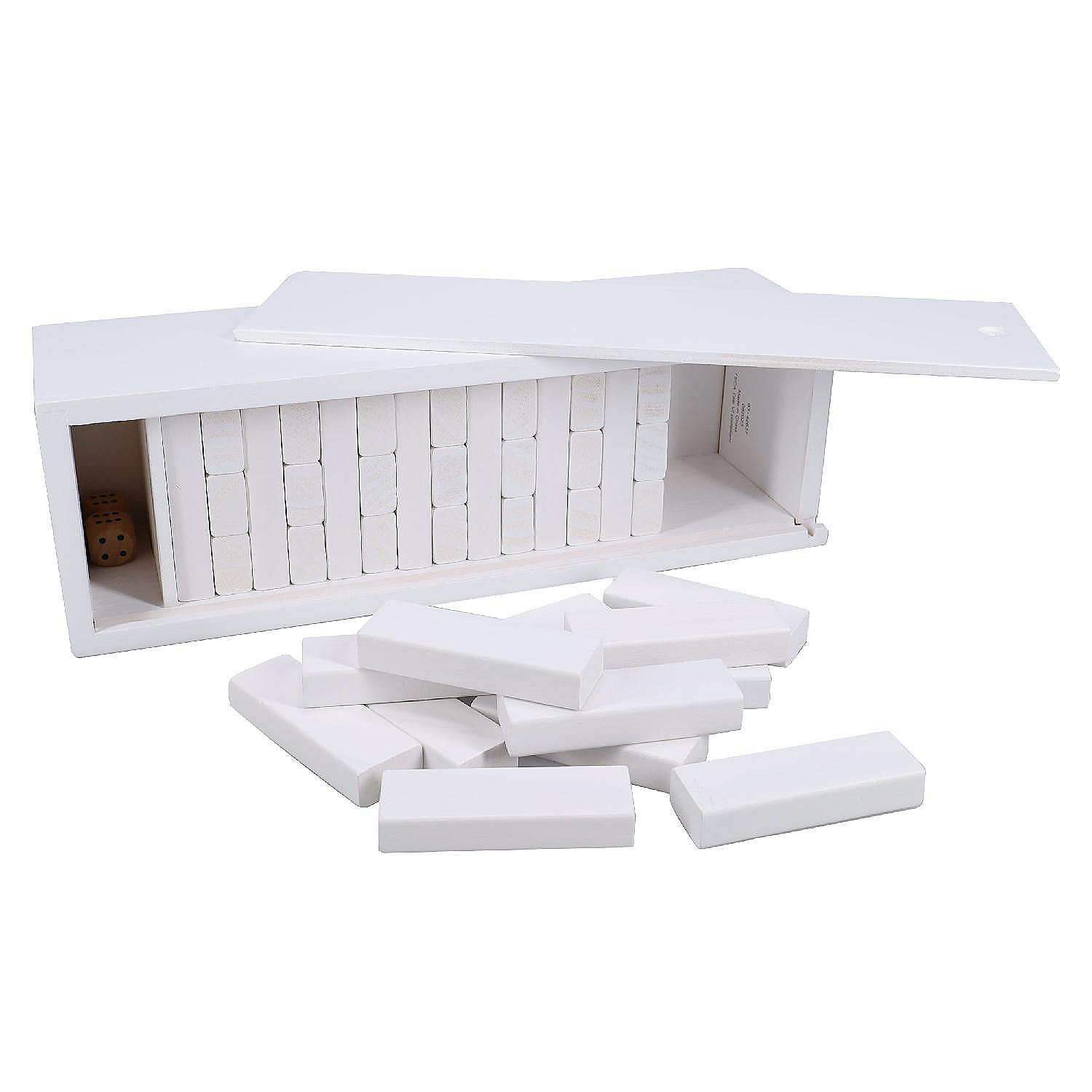 Put your steady hand and balancing skills to the test by carefully removing wooden blocks from the stack one at a time. A great game that is simple to learn and everyone in the family can participate. Includes one wooden die to be rolled for determining who goes first. Game too easy for you? Make it a challenge by rolling the die to determine how many pieces the player must remove during one play. Suspenseful and exciting with guaranteed laughs! Build the stack, and take turns pulling blocks and then stack each piece on top of the stack but don't be the one to make the timbers come jumbling down. Comes with a wooden storage box with sliding lid. Stack the pieces into the wooden box by placing three blocks per layer crosswise. Simply remove the sliding wood piece from the bottom for easy game set-up. Impress with this unique option for any birthday, graduation, baby or wedding shower. An alternative to a traditional guest book, where guests write their well wishes on a blank block. This is also an excellent gift for groomsmen or as a 5th wedding anniversary (wood). Whether it is with friends in the bar or family in your living room, this classic game has entertained happy people around the world for decades. The durable blocks are great for educational settings and indoor recess for elementary aged kids, and can also be played outdoors.
