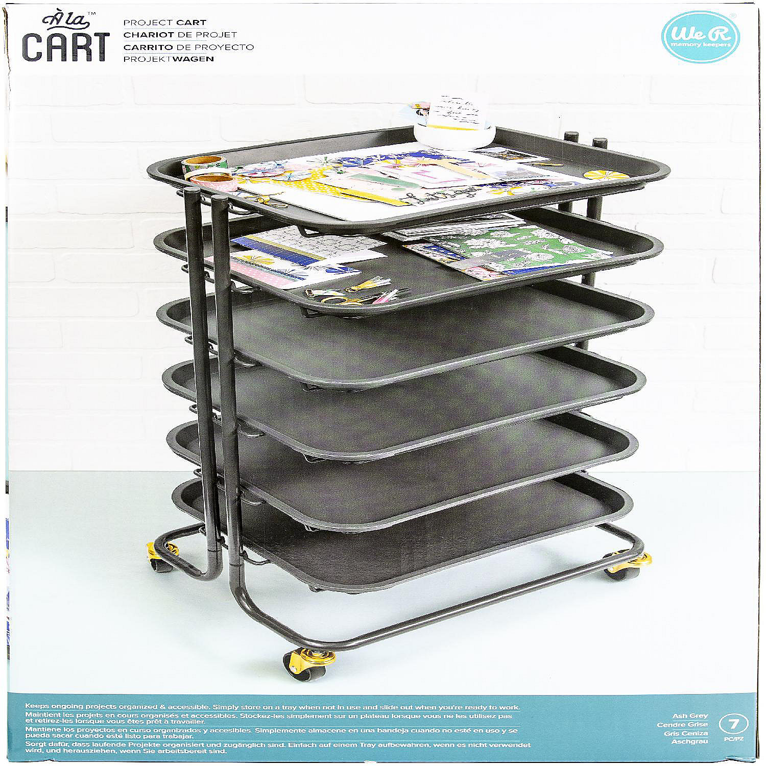 This cart keeps ongoing projects organized and accessible. Simply store on a tray when in use and slide out when you are ready to work. Perfect for ongoing craft projects, paper work, school assignments, games and more. This package contains one 20x30x13 inch project cart with durable metal construction, six removable trays and gold caster wheels. Imported.