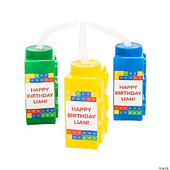 16 oz. Personalized Color Brick Building Block Party Reusable Plastic Cups with Lids & Straws - 16 Ct.
