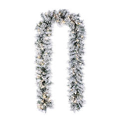 Glitzhome 9ft Pre-Lit Snow Flocked Greenery Pine Christmas Garland, with 70 Warm White/Multi-color C3 Clear LED Lights and Timer,8 Function