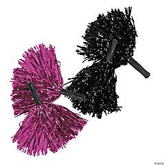 10" Metallic Pink & Black Team Spirit Cheer Foil Pom-Poms - 24 Pc.