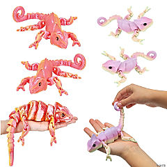 3D-Printed Articulated Plastic Large & Small Lizards Assortment - 6 Pc.