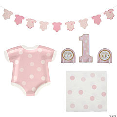 60 Pc. Pink First Birthday Party Disposable Tableware Kit for 24 Guests