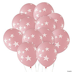 Pink with White Stars 11" Latex Balloons – 24 Pc.