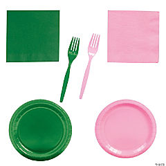248 Pc. Pink & Green Disposable Tableware Kit for 24 Guests