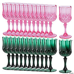 6 3/4" 8 oz. Pink & Green Patterned Plastic Wine Glasses Kit - 24 Pc.