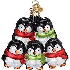 Old World Christmas Blown Glass Ornament for Christmas Tree, Penguin Family Of 5 with OWC Gift Box