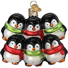 Old World Christmas Blown Glass Ornament for Christmas Tree, Penguin Family Of 6 with OWC Gift Box