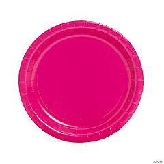 9" Hot Pink Round Disposable Paper Dinner Plates - 24 Ct.