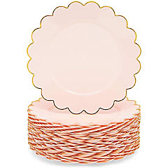 50 Pack Pink and Gold Plastic Plates, 9 Inch Scalloped Plates with Gold Rim for Birthday Party, Baby Shower