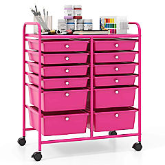 Costway 12-Drawer Rolling Storage Cart with 2 Sizes Plastic Drawers Hot Pink