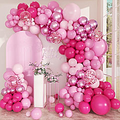 Pink Balloon Arch Kit, 168 Pcs Hot Pink Balloon Garland, 18 12 10 Inch Confetti Latex Metallic Balloons For Birthday Princess Wedding Baby Shower Party Decorat