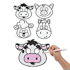 7 1/2" - 10" Color Your Own Farm Animal Cardstock Masks - 4 Pc.