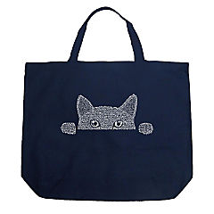 Large Word Art Tote Bag - Peeking Cat - 20"W x 15"H x 5"D