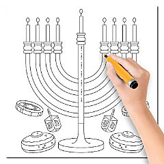 Magnet Me Up Color Your Own Hanukkah Menorah with coins, dreidels and Sufganiyah donuts, DIY Coloring Holiday Magnet Decal for Chanukkah, 6x6 in, Creative Gift