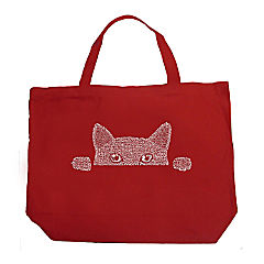 Large Word Art Tote Bag - Peeking Cat - 20"W x 15"H x 5"D