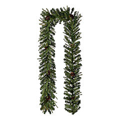 National Tree Company, First Traditionsâ„¢ Collection, 9 ft. Pre-Lit Artificial North Conway Garland with Glittery Cones and Eucalyptus, 100 Warm White LED Lights- Battery Operated with Timer