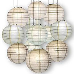 PaperLanternStore Neutral Color Party PACK Parallel Ribbed Paper Lantern Combo Set (12 pc Set)