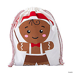 14" x 18" Medium Gingerbread Canvas Drawstring Bag with Felt Candy & Pom-Pom