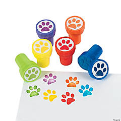 1 1/2" x 1" Bright Colors Paw Print Plastic Stampers - 24 Pc.