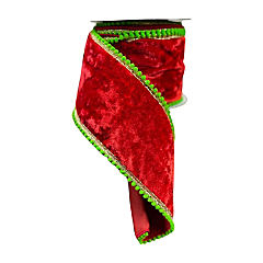 4" Red & Green Piping Velvet Metallic Dupion Ribbon (5 Yards)