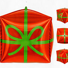Edge Collections - 18" - Red - Christmas Present Cube Balloon