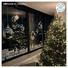 City Scape Christmas Border Window Cling Decal for Holiday Decorating and Home Decor. Reusable, Double Sided, Made in America.