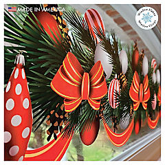 Window Flakes Fir Cone, Ribbon And Ornament Window Cling Decal Christmas Holiday Vinyl Border Large
